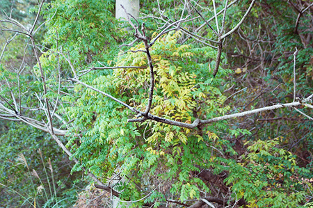 ÁÙ±â´Â °¡´Ã°í ¿¬¾àÇÏ¸ç ±æÀ̰¡ 3m¿¡ ´ÞÇÏ°í ¾î¸° °¡Áö¿¡ ÅÐÀÌ ÀÖ´Ù. ÀÙÀº ¸¶ÁÖ³ª°í 9¡13°³ÀÇ ÀÛÀºÀÙÀ¸·Î ±¸¼ºµÈ ±ê²Ã°ãÀÙÀ̸ç, ÀÛÀºÀÙÀº ±æÀÌ 3¡6cmÀÇ ´Þ°¿ ¸ð¾ç ¶Ç´Â ´Þ°¿ ¸ð¾çÀÇ ¹Ù¼Ò²ÃÀÌ¸ç ³¡ÀÌ »ÏÁ·ÇÏ°í ¹Ø ºÎºÐÀÌ µÕ±Û¸ç °¡ÀåÀÚ¸®°¡ ¹Ô¹ÔÇÏ´Ù. ÀÙ ¾ç¸é¿¡ ÅÐÀÌ ¾ø°í, ÅÎÀÙÀº ¹Ù´Ã ¸ð¾çÀ̸ç ÀÛ´Ù.
