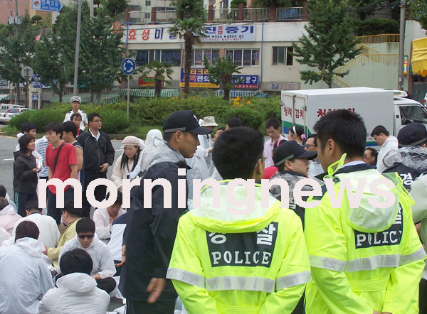 °ÅÁ¦°æÂû¼ÀÇ À̳¯ ´Ü¼ÓÀ¸·Î °ÅÁ¦․Å뿵․¸¶Ã¢±Ç µî ´ëÇѾȸ¶»çÇùȸ ȸ¿ø ¾à 30¿©¸íÀÌ °æÂû¼¸¦ Ç×Àǹ湮 ÇöÀç±îÁö °æÂû¼ Á¤¹® ¾Õ¿¡¼ °æÂû´Ü¼Ó¿¡ ´ëÇÑ Ç×ÀǸ¦ ÇÏ¸é¼ Ã³¹úÇÏÁö ¸» °ÍÀ» ¿ä±¸Çϰí ÀÖ´Ù.