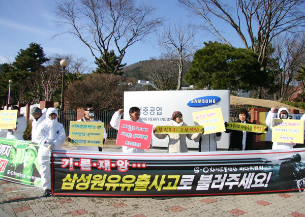ÇØ»ó½ÃÀ§¿¡ ³ª¼± ȸ¿øµéÀº À¯Á¶¼± À¯Ãâ»ç°í¸¦ ÀÏÀ¸Å² °Í°ú °°Àº Á¾·ùÀÇ ÇØ»óÅ©·¹Àο¡ ¿Ã¶ó ³ª»Û»ï¼º, ¡®ºñÀÚ±ÝÀ» ¸ðµÎ ¹ÙÃÄ ¼ÇؾÈÀ» »ì·Á³»¶ó' ´Â µîÀÇ Ç÷¡Ä«µå¸¦ °É°í ±â½À½ÃÀ§¸¦ ¹ú¿´´Ù.