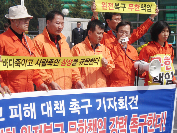 ȯ°æ·Ã ¹Ù´ÙÀ§¿øÈ¸¿Í ÅÂ¾È È«¼º ¹× Àü³²Áö¿ª ±â¸§À¯Ãâ»ç°í ÇÇÇØÁֹδëÇ¥´ÜÀº 29ÀÏ ¿ÀÀü 10½Ã °ÅÁ¦ »ï¼ºÁß°ø¾÷ Á¤¹® ¾Õ¿¡¼ »ï¼ºÁß°ø¾÷ ´ë»ó ÅõÀï ¹× ¡®Worst Oil-spill Worst SAMSUNG¡¯ »ï¼º±Ôź ±¹Á¦»çȸ È«º¸È°µ¿À» À§ÇÑ »óȲ½Ç ¼³Ä¡¸¦ ¾Ë¸®´Â ±âÀÚȸ°ßÀ» °®°í ¼º¸íÀ» ¹ßÇ¥Çß´Ù.