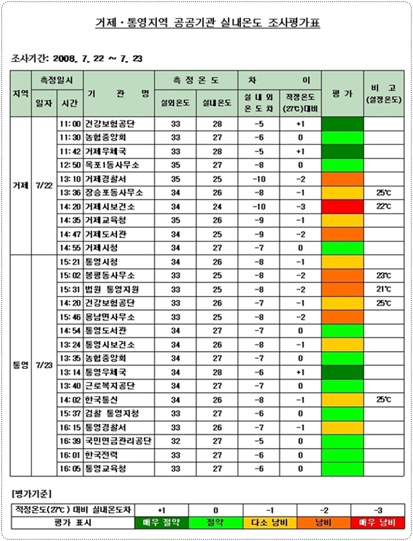 Å뿵°ÅÁ¦È¯°æ¿îµ¿¿¬ÇÕÀÌ °ÅÁ¦Å뿵Áö¿ª °ø°ø±â°ü 26°÷ÀÇ ½Ç³»¿Âµµ¸¦ ÃøÁ¤ÇÑ °á°ú Á¶»ç´ë»óÀÇ Àý¹ÝÀÌ ÀûÁ¤¿Âµµ¸¦ ÁöŰÁö ¾ÊÀº °ÍÀ¸·Î Á¶»çµÆ´Ù. °ø°ø±â°üÀÌ ¿ÀÈ÷·Á ¿¡³ÊÁö ³¶ºñ¿¡ ¼Ö¼±¼ö¹üÇÏ´Â °á°ú·Î ³ªÅ¸³µ´Ù.