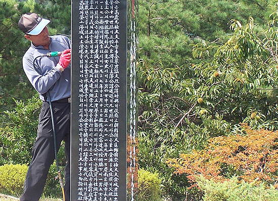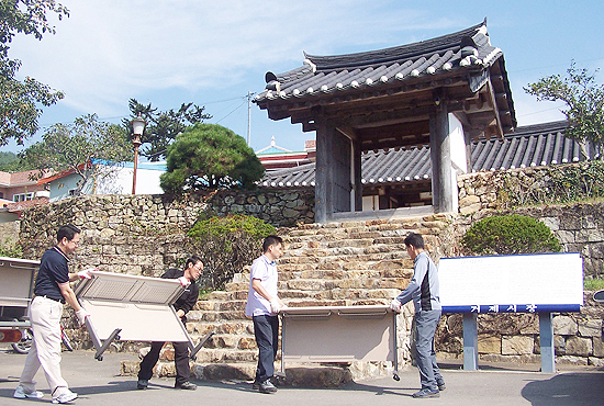 ´ë°è¸¶À» °Ç³ÊÆí¿¡ ¸¶·ÃµÈ ÀåÁö¿¡´Â ÀκεéÀÌ ¹¦¼Ò¸¦ ¼ÕÁúÇÏ°í ºñ¹®À» »õ±â´Â ÀÛ¾÷À» Çϰí ÀÖ´Ù.