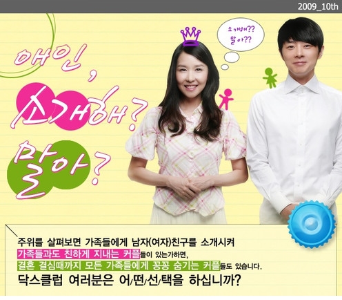 ¡®¾ÖÀÎ ¼Ò°³ÇØ ¸»¾Æ?¡¯ ¼³¹®Á¶»ç¿¡ °üÇÑ ÀÚ¼¼ÇÑ °á°ú´Â ´Ú½ºÅ¬·´ °ø½Ä ȨÆäÀÌÁö(www.daksclub.com)ÀÇ ¡®·¯ºê Å×½ºÆ®¡¯ Äڳʿ¡¼ È®ÀÎ ÇÒ ¼ö ÀÖ´Ù.