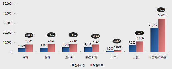 <ǰ¸ñº° ÀüÅë½ÃÀå VS ´ëÇü¸¶Æ® °¡°Ýºñ±³>