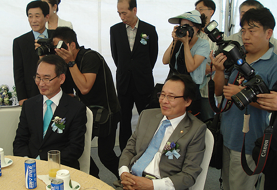 À̳¯ ¿¬°á½Ä¿¡´Â ±èµÎ°ü °æ³²Áö»ç, Çã³²½Ä ºÎ»ê½ÃÀå, ±Ç¹ÎÈ£ °ÅÁ¦½ÃÀå. °¼±¸Ã»Àå, À±¿µ±¹È¸ÀÇ¿ø µîÀÌ Âü¼®Çß´Ù. ¶ÇÇÑ °¡´öµµ ÁֹδëÇ¥¿Í Àå¸ñÁֹΠ10¿©¸íÀÌ Âü¼®, ħ¸ÅÅͳΠ¿¬°á½ÄÀ» ÃàÇÏÇß´Ù.