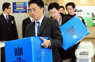 °ËÂûÀº À̳¯ ¿ÀÀü 9½Ã30ºÐºÎÅÍ ¿ÀÈÄ 3½Ã±îÁö ¼¿ï Áß±¸ ½ÅÇÑÀºÇà º»Á¡¿¡ 20¿©¸íÀÇ ¼ö»ç°üÀ» º¸³» À̵éÀÇ »ç¹«½Ç°ú ºñ¼½Ç µî 6~7°÷¿¡¼ ȸ°èÀåºÎ¿Í ÄÄÇ»ÅÍ Çϵåµð½ºÅ© µîÀ» È®º¸Çß´Ù.