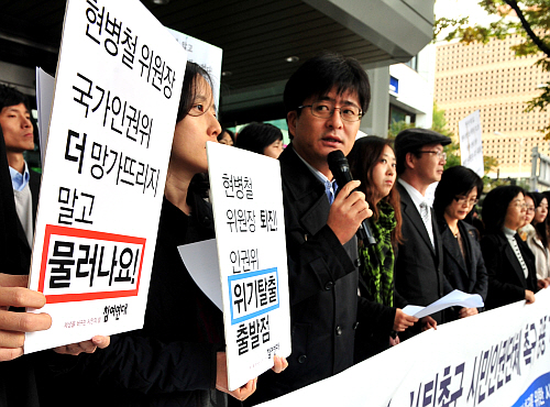 Àü±¹ 223°³ ÀαǴÜü·Î ±¸¼ºµÈ 'Çöº´Ã¶ ÀαÇÀ§¿øÀå »çÅ𸦠Ã˱¸ÇÏ´Â ÀαǽùδÜü ´ëåȸÀÇ'´Â À̳¯ ¿ÀÀü û¿Í´ë Àα٠û¿îµ¿»ç¹«¼Ò ¾Õ¿¡¼ ±âÀÚȸ°ßÀ» °®°í "ÀαÇÀ§ ÆÄÇàÀ» ºÎÃß±â´Â ÀýÂ÷ ¾ø´Â Á¤ºÎÀÇ Àλç±Ç Çà»ç¸¦ ±ÔźÇÑ´Ù"°í ÁöÀûÇÑ µÚ À̰°Àº ³»¿ëÀÇ Ç×ÀÇ ¼ÇÑÀ» º¸³Â´Ù.