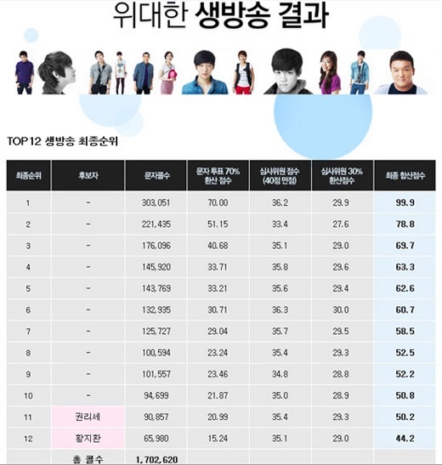 ÀÌó·³ Á¡¼ö¸¦ º¸¸é ¹®ÀÚ ÅõÇ¥¿¡¼ 30¸¸ 3151Ç¥ÀÇ ¹®ÀÚÄݰú ½É»çÀ§¿øµé·ÎºÎÅÍ 36.2Á¡À» ¹ÞÀº ¹éû°ÀÌ 1À§¸¦ Â÷ÁöÇß´Ù´Â °ÍÀ» ¾Ë¼ö ÀÖ´Ù.