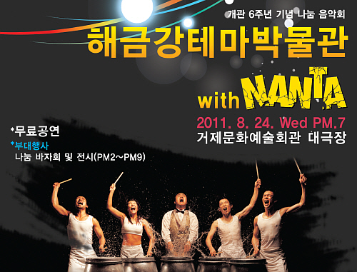 ÇØ±Ý°Å׸¶¹Ú¹°°ü(°üÀå: À¯Ãµ¾÷, °æ¸íÀÚ)ÀÌ ¿À´Â 24ÀÏ, °³°ü 6Áֳ⠱â³ä ³ª´® À½¾Çȸ ¡®2011 ÇØ±Ý°Å׸¶¹Ú¹°°ü with NANTA(³Å¸)¡¯¸¦ °³ÃÖÇÑ´Ù.