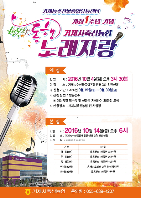 °ÅÁ¦½ÃÃà»ê³óÇùÀº ¿À´Â 10¿ù 14ÀÏ ¿ÀÈÄ 6½Ã °ÅÁ¦³ó¼ö»ê¹°Á¾ÇÕÀ¯Åë¼¾ÅÍ 3Ãþ ÄÁº¥¼ÇȦ¿¡¼ °ÅÁ¦³ó¼ö»ê¹°Á¾ÇÕÀ¯Åë¼¾ÅÍ 1Áֳ⠸ÂÀÌ ¡®ÇູÇѵ¿Çà °ÅÁ¦½ÃÃà»ê³óÇù ³ë·¡ÀÚ¶û¡¯À» °³ÃÖÇÑ´Ù.