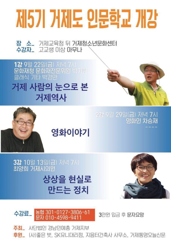 2017³â 9¿ù 22ÀÏ(±Ý) ½ÃÀÛÇÏ´Â ¡®Á¦5±â °ÅÁ¦µµ Àι®Çб³¡¯´Â ¡®°ÅÁ¦µµ Àι®Çб³¡¯¶ó´Â À̸§¿¡ °É¸Â°Ô 3°Áß 2°ÀÌ °ÅÁ¦¸¦ ÁÖÁ¦·Î ÇÑ °Á´Ù.