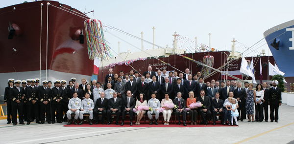 ´ë¿ìÁ¶¼±Çؾç(´ëÇ¥ ³² »óÅÂ, www.dsme.co.kr)ÀÌ 28ÀÏ ¼¼°è ÃÖ´ëÇüÀÎ 26¸¸3000§©±Þ ÃÊ´ëÇü LNG¿î¹Ý¼± 3ôÀÇ µ¿½Ã ¸í¸í½ÄÀ» °¡Á³´Ù. ´ë¿ìÁ¶¼±ÇØ¾ç ³²»óÅ »çÀå, īŸ¸£°¡½º ÇÁ·ÎÁ§Æ® ÄÁ¼Ò½Ã¾ö ȸ»ç Áß ÇϳªÀÎ ÅäÅ»ÀÇ ÀÌºê ·çÀÌ ´Ù¸®±î·¹¸£(Yves-Louis Darricarr衦