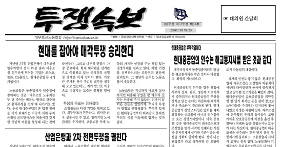 ¡®Çö´ëÁß°ø¾÷¡¯À» ÀμöºÎÀû°Ý¾÷ü·Î ±ÔÁ¤ÇÑ ´ë¿ìÁ¶¼±³ëÁ¶´Â 'Çö´ë¸¦ Àâ¾Æ¾ß ¸Å°¢ÅõÀï¿¡¼ ½Â¸®ÇÑ´Ù' ¸ç »ê¾÷ÀºÇà ¾Ð¹ÚÀ» À§ÇÑ Á¦2Â÷ Àü¸éÅõÀïÀ» ¼±¾ðÇß´Ù. 1ÀÏ °ÅÁ¦ ´ë¿ìÁ¶¼± ³ëÁ¶´Â ¡°Çö´ëÁß°ø¾÷ÀÇ Àμö´Â ÇØ°íÅëÁö¼¸¦ ¹Þ´Â °Í°ú °°´Ù¡± ¸ç Çö´ëÁß°ø¾÷ÀÇ ´ë¿ìÁ¶¼± ¡¦