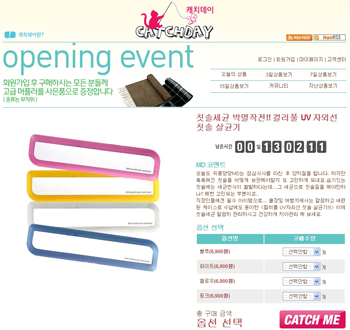 ÇÏ·ç¶ó´Â ½Ã°£ Á¦ÇÑÀ» µÎ°í Àú·ÅÇÑ °¡°Ý¿¡ »óǰÀ» ÆÄ´Â µ¥Àϸ® ¼îÇθô, ¼ÒÀ§ ¿ø¾îµ¥ÀÌ(One a Day) ¼îÇθô½ÃÀå¿¡ µðÀÚÀÎ ¹®±¸ À¯ÅëÀ» Àü¹®À¸·Î ÇÏ´Â ±¹ÁøÇǾص𰡠µµÀüÀåÀ» ´øÁ³´Ù. ijġµ¥ÀÌ(www.catchday.co.kr)°¡ ¹Ù·Î ±× °÷ÀÌ´Ù. ijġµ¥ÀÌ´Â ÇÏ·ç ¼¼ÀÏÄÚ³Ê »Ó¸¸ ¾Æ¡¦