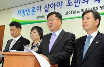 ¡°Áö¹æ¾ð·ÐÀÌ »ì¾Æ¾ß µµ¹ÎÀÇ ¸ñ¼Ò¸®°¡ »ê´Ù¡±. 2ÀÏ °æ³²µµÀÇȸ Á¦2±³¼·´ÜüÀÎ »õÈñ¸Á¿¬´ë ´ëÇ¥´ÜÀÌ Áö¿ª¾ð·Ð °í»ç½ÃŰ´Â ¾ð·Ð°ü°è¹ý öȸ¸¦ ¿ä±¸ÇÏ´Â ±âÀÚȸ°ßÀ» °¡Á³´Ù. µµÀÇȸ ºê¸®Çη뿡¼ ¿¸° À̳¯ ±âÀÚȸ°ß¿¡¼ ±èÇØ¿¬ °æ³²µµ ÀÇȸ ÀÇ¿øÀ» ºñ·ÔÇÑ »õÈñ¸Á¿¬´ë¡¦