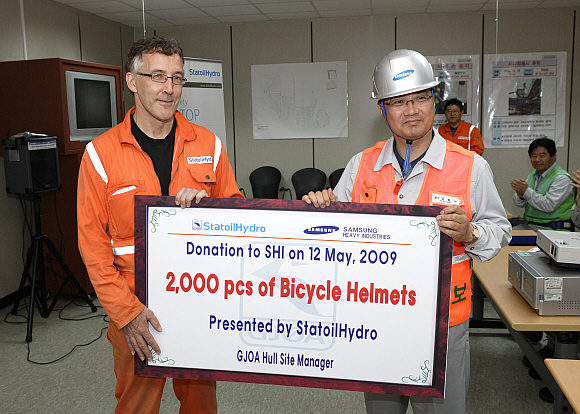 »ï¼ºÁß°ø¾÷(´ëÇ¥ÀÌ»ç ºÎȸÀå ±è¡¿Ï)Àº Áö³ 12ÀÏ ¼±ÁÖ»çÀÎ ³ë¸£¿þÀÌ ½ºÅÈ¿ÀÀÏÇÏÀ̵å·Î(StatoilHydro)»ç·ÎºÎÅÍ ÀÚÀü°Å Çï¸ä 2000°³¸¦ ±âÁõ¹Þ¾Ò´Ù. °ÅÁ¦Á¶¼±¼Ò ÇǼְü ¾ÈÀü±³À°Àå¿¡¼ ¿¸° À̹ø Çà»ç´Â ±èÇкó ȯ°æ¾ÈÀüÆÀÀå°ú Çì´× ¸ù(Mr. Henning Mong) ¼±ÁÖ°¨µ¶°ü ¡¦