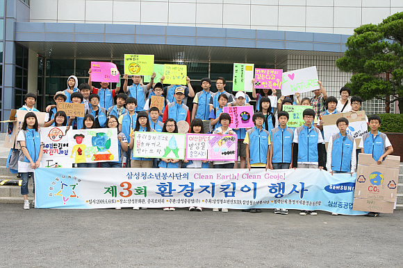 »ï¼ºÃ»¼Ò³âºÀ»ç´ÜÀÌ ¼¼°è ȯ°æÀÇ ³¯À» ¸Â¾Æ Áö³ 6ÀÏ »ï¼ºÁß°ø¾÷(´ëÇ¥ÀÌ»ç ºÎȸÀå ±è¡¿Ï) °ÅÁ¦Á¶¼±¼Ò ¹®È°ü¿¡¼ ¡®Clean Earth Clean Geoje¡¯¸¦ ÁÖÁ¦·Î ȯ°æÁöÅ´ÀÌ Çà»ç¸¦ °¡Á³´Ù.