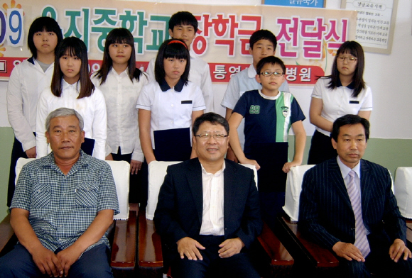 °æ³² Å뿵½Ã ¿åÁöµµ¿¡ À§Ä¡Çϰí ÀÖ´Â ¿åÁöÁßÇб³(±³Àå ¿ìÀÇ¿À)¿¡ »ç¶ûÀÇ ¼Õ±æÀÌ ÁÙÀ» À̾î ÈÁ¦´Ù. Áö³ 24ÀÏ ¿åÁöÁß ±³Àå½Ç¿¡¼´Â Å뿵¼¼°è·Îº´¿ø(º´¿øÀå ±èÈñ´ö)ÀÇ ÀåÇÐ±Ý Àü´Þ½ÄÀÌ ÀÖ¾ú´Ù. ¸Å³â ¿åÁöµµ¿¡¼ ³«µµ ÀÇ·áºÀ»ç Ȱµ¿°ú ÇÔ²² ÀåÇÐ »ç¾÷À» ÆîÄ¡°í ÀÖ´Â Å롦