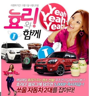 ÀÌÈ¿¸®¸¦ ¸ðµ¨·Î »õ ±¤°í¸¦ ¼±º¸À̰í ÀÖ´Â ÀÎÅÍÆÄÅ©(www.interpark.com)´Â ÀÚ»ç ȸ¿øÀÌ¸é ´©±¸³ª 100% ´ç÷µÇ´Â <È¿¸®¿Í ÇÔ²² °¡À§¹ÙÀ§º¸!> À̺¥Æ®¸¦ 9¿ù 20ÀϱîÁö ÁøÇàÇÏ°í ½î¿ï ÀÚµ¿Â÷, ¹Ù³ª³ª¸À ¿ìÀ¯, ½ºÅ¸¹÷½º Ä¿ÇDZ³È¯±Ç, ¾ÆÀÌÆ÷ÀÎÆ® µî ´Ù¾çÇÑ °æÇ°À» ÁõÁ¤ÇÑ´Ù.