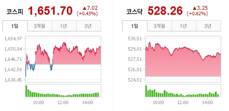 11ÀÏ ÄÚ½ºÇÇÁö¼ö´Â ¹Ì±¹ Áõ½ÃÀÇ »ó½Â°ú ¿Ü±¹ÀÎ ¸Å¼ö¼¼¿¡ ÈûÀÔ¾î 1650¼±À» µ¹ÆÄÇß´Ù. ¡ß¿Ü±¹ÀÎ ÀÌÆ²Â° `´ë°Å¸Å¼ö`...ÄÚ½ºÇÇ 1650¼± ¾ÈÂø À̳¯ ÄÚ½ºÇÇ Áö¼ö´Â ÀüÀÏ´ëºñ 0.43%(7.02p) ¿À¸¥ 1651.70À», ÄÚ½º´ÚÁö¼öµµ 3.25Æ÷ÀÎÆ®(0.62%) ¿À¸¥ 528.26¿¡ ÀåÀ» ¸¶ÃÆ´Ù. ÄÚ¡¦