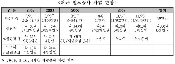 ±¹¹ÎÀ» º¼¸ð·Î ÇÑ Ã¶µµ³ëÁ¶ÀÇ ºÒ¹ýÆÄ¾÷À¸·Î öµµ°ø»çÀÇ ÇÇÇØ±Ý¾×ÀÌ ¹«·Á 386¾ï8000¸¸¿ø(2002³â~2009³â 11¿ù 30ÀϱîÁö, 20Àϰ£)ÀÌ ³Ñ´Â °ÍÀ¸·Î ³ªÅ¸³µ´Ù. ±×·¯³ª ºÒ¹ýÆÄ¾÷À¸·Î ÀÎÇÑ ÁÖµ¿ÀÚ Â¡°èÀÚ´Â ¼Ø¹æ¸ÁÀÌ¾î¼ Ã³¹úÀ» ¹ÞÀº ÈÄ º¹±Í, ¶Ç´Ù½Ã ÆÄ¾÷À» ÁÖµ¿Çϰí ÀÖ´Â ¡¦