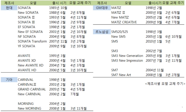ÀÚµ¿Â÷ ¿îÀüÀÚ¸¶´Ù Â÷ ±³Ã¼ ½ÃÁ¡À» °í¹ÎÇÑ´Ù. ÀÚµ¿Â÷°¡ ³ëÈÄÇ߰ųª, °æÁ¦ »çÁ¤¿¡ ¸Â´Â Â÷¸¦ Ÿ¾ßÇÒ ¶§ ÀÚµ¿Â÷¸¦ ¹Ù²Û´Ù. ¶Ç ÇϳªÀÇ ÀÚµ¿Â÷ ±³Ã¼ÀÇ Å« ÀÌÀ¯´Â ¹Ù·Î »õ ¸ðµ¨ÀÇ Ãâ½Ã ¶§¹®ÀÌ´Ù. Áß°íÂ÷»çÀÌÆ® Ä«Áî µ¥ÀÌÅ͸®¼Ä¡ÆÀÀÇ Á¶»çÇÑ ¡ºÁ¦Á¶»çº° ¸ðµ¨ ±³Ã¼ Áֱ⡻¡¦