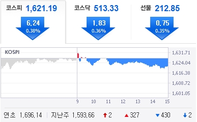 18ÀÏ ÄÚ½ºÇÇÁö¼ö°¡ ´Ü±â Â÷ÀÍ ¸Å¹° Áõ°¡¿Í ±â°üÀÇ ¸Åµµ ÀüȯÀ¸·Î ÀüÀÏ ´ëºñ 6.24Æ÷ÀÎÆ®(-0.38%) ¶³¾îÁø 1621.19·Î ¸¶°¨Çß´Ù. ¾÷Á¾º°·Î´Â Àü±â°¡½º¾÷°ú Áõ±Ç, ÀºÇà µî ´ëºÎºÐ ³»¸²¼¼¸¦ º¸ÀÎ °¡¿îµ¥ ÀÇ·áÁ¤¹Ð°ú Á¾À̸ñÀç, À¯Åë¾÷, ºñ±Ý¼Ó±¤¹°, ±â°è, ÀǾàǰ, º¸Çè, Å롦