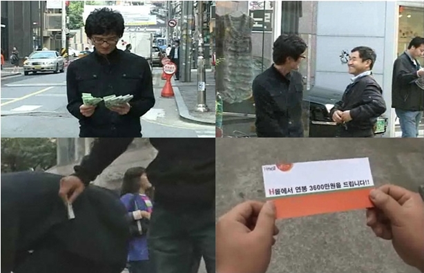 °¡¼ö À̹üÇÐÀÌ ¼¿ï ¾Ð±¸Á¤ °Å¸®¿¡¼ ¹«ÀÛÀ§·Î µ·À» ³ª´²ÁÖ´Â ÀÎÅÍ³Ý µ¿¿µ»óÀ¸·Î ´«±æÀ» ²ø°í ÀÖ´Ù. 25ÀÏ ÀÎÅÍ³Ý »ó¿¡¼ ÈÁ¦°¡ µÈ ÀÌ ¿µ»ó¿¡¼ À̹üÇÐÀº ¾Ð±¸Á¤ ÇѺ¹ÆÇ¿¡¼ ÇàÀεéÀÇ ÁÖ¸Ó´Ï¿Í °¡¹æ¿¡ ¸ô·¡ ¸¸¿ø±Ç ÁöÆó¸¦ ³Ö¾îÁÖ°í ÀÖ´Ù. ÀÌ µ¿¿µ»óÀ¸·Î ÀÎÇØ ±×´Â ¡®¡¦