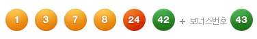£Û¸ð´×´º½º£Ý6¿ù 5ÀÏ ½Ç½ÃµÈ Á¦392ȸ ³ª´® ·Î¶Ç 1µî ´ç÷¹øÈ£´Â '8, 1, 42, 3, 24, 7'¹øÀ̸ç, 2µî º¸³Ê½º ¹øÈ£´Â 43¹øÀÌ´Ù.