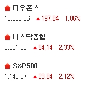 ´º¿åÁõ½Ã°¡ Á¦Á¶¾÷ °æ±â È£Àü ±â´ë°¨¿¡ ±ÞµîÇß´Ù. 24ÀÏ(ÇöÁö½Ã°£) ´º¿åÁõ±Ç°Å·¡¼Ò(NYSE)¿¡¼ ºí·çĨ Áß½ÉÀÇ ´Ù¿ìÁö¼ö´Â Àü³¯º¸´Ù 197.84Æ÷ÀÎÆ®(1.86%) »ó½ÂÇÑ 1¸¸860.26¿¡ °Å·¡¸¦ ¸¶ÃÆ´Ù. ´ëÇüÁÖ Áß½ÉÀÇ S&P500Áö¼ö´Â Àü °Å·¡ÀÏ ´ëºñ 23.81Æ÷ÀÎÆ®(2.12%) ¿À¸¥1148.64¿¡,¡¦ |