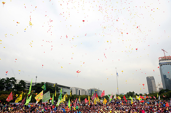 29ÀÏ ¿ÀÈÄ 2½Ã. Àü±¹ °¢Áö¿¡¼ ´Þ·Á¿Â ³ó¹ÎµéÀÌ °áÀÇ¿¡ Âù ¸ð½ÀÀ¸·Î ³ó¹Î´ëȸ°¡ °³ÃֵǴ ¼¿ï ¿©Àǵµ ¹®È¸¶´çÀ¸·Î Áý°áÇß´Ù. À̵éÀº ±èÁ¦, ±èõ, ¾Æ»ê, »óÁÖ µî °¢ Áö¿ªÀ» ³ªÅ¸³»´Â ±ê¹ßÀ» ¾Õ¼¼¿ì°í Â÷°¡¿î ¾Æ½ºÆÈÆ® ¹Ù´Ú¿¡ ÀÚ¸®¸¦ Æì°í ¾É¾Ò´Ù. ±¤ÁÖ ³ó¹Îµé ¡¦