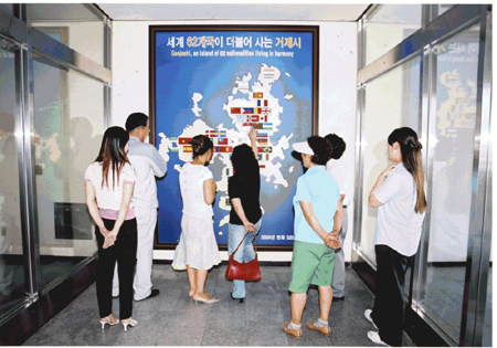 °ÅÁ¦½Ã¿¡ °ÅÁÖÇÏ´Â ¿Ü±¹ÀεéÀ» À§ÇØ °ÅÁ¦½Ã°¡ ±¹Á¦ÀÇ ³¯À» ÁöÁ¤Çѵ¥ À̾î 62°³±¹ÀÇ ±¹°¡º° ±¹±âÁ¶Çü¹°À» Á¦ÀÛ, ½Ãû Çö°ü¿¡ ºÎÂøÇß´Ù. °ÅÁ¦µµÀÇ ¸ð¾çÀ» º»¶° ±× À§¿¡ °ÅÁ¦½Ã °ÅÁÖ 62°³±¹ ¿Ü±¹ÀεéÀÌ ´õºÒ¾î »ì¾Æ°£´Ù´Â ¶æÀ¸·Î ±¹±â¸¦ Á¶È·Ó°Ô ¹èÄ¡Çß´Ù. °ÅÁ¦½Ã´Â ¡¦