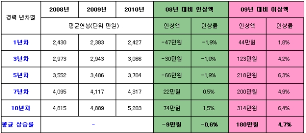 ¸ÅÃâ¾× »óÀ§ 1000´ë ±â¾÷ÀÇ ¿ÃÇØ Æò±Õ ¿¬ºÀ Àλó·üÀº 4.7%ÀÎ °ÍÀ¸·Î Áý°èµÆ´Ù. ÀÌ´Â ¹Ì±¹¹ß ±ÝÀ¶À§±â°¡ °íÁ¶µÆ´ø 2009³â ¿¬ºÀ Àλó·üÀÌ ¸¶À̳ʽº¿´´ø °Í¿¡ ºñÇØ ´Ù¼Ò È£ÀüµÈ °ÍÀ̶ó°í º¼ ¼ö ÀÖ´Ù. Ãë¾÷Æ÷ÅÐ ÀâÄÚ¸®¾Æ°¡ ÀÚ»ç ¿¬ºÀÅë°è¼ºñ½º¿¡ µî·ÏµÈ ¸ÅÃâ¾× »óÀ§ 100¡¦