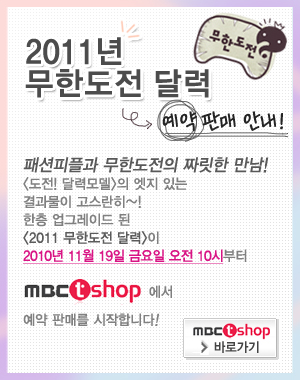MBC Àα⿹´É ÇÁ·Î±×·¥ '¹«ÇѵµÀü'ÀÌ 2011³â ´Þ·ÂÀ» ¿¹¾à ÆÇ¸ÅÇÑ´Ù. '¹«ÇѵµÀü'Àº 19ÀÏ ¿ÀÀü 10½ÃºÎÅÍ MBC Ƽ¼ó(tshop), GS SHOP, d&shop ÃÑ 3±ºµ¥¸¦ ÅëÇØ 2011³â ´Þ·Â ¿¹¾à ÆÇ¸Å¸¦ ½ÃÀÛÇÑ´Ù. À̹ø 2011³â ´Þ·Â Á¦ÀÛÀº 'µµÀü! ½´ÆÛ¸ðµ¨'À» ¸ðƼºê·Î 'µµÀü! ´Þ·Â¡¦