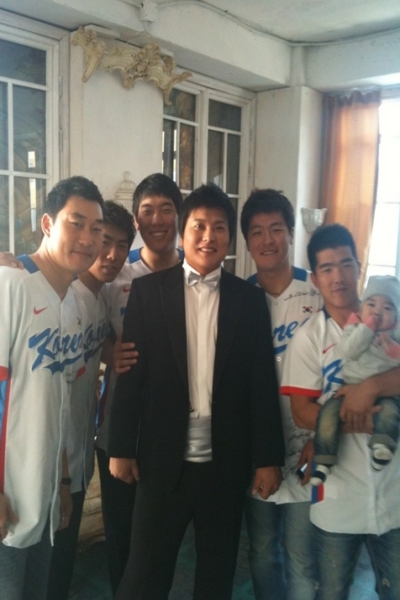 ºÀÁß±Ù ¼±¼ö°¡ ±èÅÂ±Õ ¼±¼öÀÇ °áÈ¥½ÄÀ» ¾ÕµÎ°í ÇÔ²² ÂïÀº µé·¯¸® »çÁøÀ» °ø°³ÇØ ÈÁ¦´Ù. ºÀÁß±ÙÀº 22ÀÏ ÀÚ½ÅÀÇ ¹ÌÅõµ¥ÀÌ¿¡ ¡®Å±ÕÀÌ °áÈ¥ÇØ¿ä ¤»¤» µé·¯¸® ¿Í¼ ÇÑÀå ÂïÀ½^^¡¯¶ó¸ç »õ½Å¶û ±èÅÂ±Õ ¼±¼ö¿Í ÇÔ²² ÂïÀº »çÁøÀ» ¿Ã·È´Ù. ºÀÁß±Ù, °Á¤È£, ±èÇö¼ö, ±èűա¦