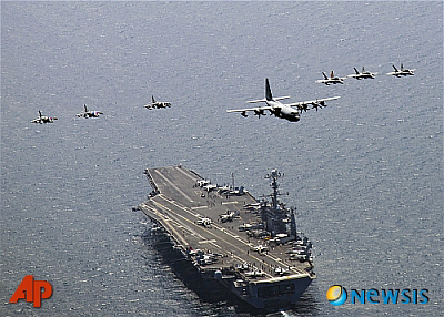 ¹Ì±¹ÀÇ ÇÙÃßÁø Ç×°ø¸ðÇÔ Á¶Áö¿ö½ÌÅÏ È£°¡ ÇÑ¹Ì ¿¬ÇÕÈÆ·ÃÀ» ¾ÕµÎ°í ÁÖ¸ñ¹Þ°í ÀÖ´Ù. ƯÈ÷ Á¶Áö¿ö½ÌÅÏÈ£ÀÇ ¼ÇØ ÁøÀÔÀº ÁÖº¯±¹ÀÇ ¿µÅä Àü¿ª¿¡ ´ëÇÑ Å¸°ÝÀÌ °¡´ÉÇÑ °ÍÀ» ÀǹÌÇØ Áß±¹°ú ºÏÇÑÀº ±×µ¿¾È Ç׸ð Âü°¡ ÈÆ·Ã¿¡ °·ÂÈ÷ ¹Ý´ëÇØ ¿Ô´Ù. À̸¥¹Ù '¶°´Ù´Ï´Â ±º»ç±âÁö¡¦