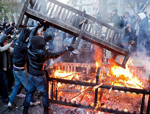¡¼·±´ø(¿µ±¹)=AP/´º½Ã½º¡½¿µ±¹ÀÇ ´ëÇеî·Ï±Ý Àλó¾È¿¡ ¹Ý´ëÇÏ´Â ½ÃÀ§°¡ °è¼ÓµÈ °¡¿îµ¥ 9ÀÏ(ÇöÁö½Ã°£) ·±´ø ÀÇȸ±¤Àå¿¡¼ ½ÃÀ§ÇлýµéÀÌ ³ª¹«º¥Ä¡¸¦ ºÒÅ¿ì°í ÀÖ´Ù. ¾Õ¼ ¿µ±¹ Á¤ºÎ´Â ´ëÇб³ Çкñ »óÇѼ±À» ÇöÀçÀÇ 3¹è¿¡ ´ÞÇÏ´Â 9õ ÆÄ¿îµå(ÇÑÈ ¾à 1600¸¸¿ø)±îÁö ¿Ã¸®¡¦