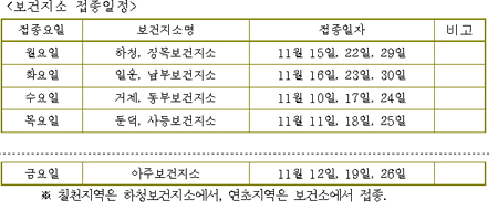 °ÅÁ¦½Ãº¸°Ç¼Ò(¼ÒÀå Á¤±â¸¸)´Â 11¿ù 1ÀϺÎÅÍ 12¿ù ¸»±îÁö ½Ã º¸°Ç¼Ò¿Í º¸°ÇÁö¼Ò¿¡¼ À¯Ç༺µ¶°¨ ¿¹¹æÁ¢Á¾À» ½Ç½ÃÇÑ´Ù.