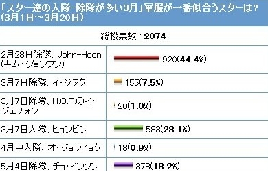 ¿¹ºñ¿ª ±èÁ¤ÈÆÀÌ ±ºº¹ÀÌ °¡Àå Àß ¾î¿ï¸®´Â ½ºÅ¸ 1À§¿¡ ¿Ã¶ú´Ù. À̹ø Á¶»ç´Â ÀϺ»ÀÇ ÇÑ·ù°ü·Ã »çÀÌÆ®ÀÎ innolife.net¿¡¼ ÇÑ·ù½ºÅ¸ 6¸íÀ» µÎ°í ¼³¹®Á¶»ç¸¦ ¹ú¿´´Ù. '½ºÅ¸µéÀÇ ÀÔ´ë/Á¦´ë°¡ ¸¹Àº 3¿ù ±ºº¹ÀÌ °¡Àå Àß ¾î¿ï¸®´Â ½ºÅ¸´Â?'¶ó´Â ÁÖÁ¦·Î ¿·È´Ù. 6¸íÀÇ ¡¦
