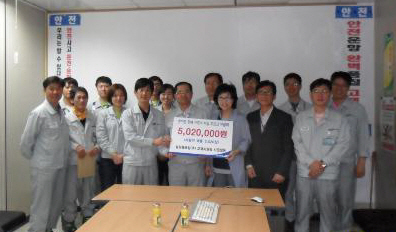 »ï¼ºÁß°ø¾÷(ÁÖ) °í°´Áö¿øÆÀ(³²ÁØ¿ì »ó¹«)³» ½Ã¿îÀü ±×·ì ,CS ±×·ì, ǰÁúº¸Áõ±×·ì »ç¿øµéÀÌ 24ÀÏ ¾Æµ¿¾çÀ°½Ã¼³ ¼ºÁö¿ø(¿øÀå À̹̼÷)ÀÇ ¾Æµ¿¼÷¼Ò ÁõÃà°ø»ç¸¦ À§ÇØ Á¤¼ºµé¿© ¸ðÀº ÈÄ¿ø±Ý 502¸¸¿øÀ» Àü´ÞÇß´Ù. °í°´Áö¿øÆÀÀÇ ÈÄ¿ø±Ý ¸ð±ÝÀº ¼ºÁö¿ø¿¡¼ ¿ÃÇØ ¾Æµ¿¼÷¼Ò ÁõÃࡦ