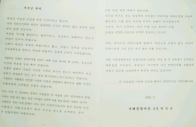 ÃÖ°æÈ£ °ÅÁ¦°æÂû¼ÀåÀÌ 4ÀÏ ¿ÀÀü °æÂû¼¿¡ º¹¹«ÁßÀÎ Àü.Àǰæ 27¸íÀÇ ºÎ¸ð¿¡°Ô ÆíÁö¸¦ º¸³Â´Ù. ¾î¹öÀ̳¯À» ¸Â¾Æ °¡Á¤¿¡ °Ç°°ú ÇູÀÌ Ãæ¸¸ÇÏ±æ ¹Ù¶õ´Ù´Â ³»¿ëÀÌ´Ù.