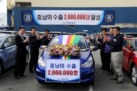 Çö´ëÀÚµ¿Â÷(ȸÀå Á¤¸ù±¸)´Â Áö³ 22ÀÏ ¿ï»ê ¼±ÀûºÎµÎ¿¡¼ Ä¥·¹·Î ¼öÃâµÇ´Â ¿¢¼¾Æ®, Åõ½Ñix µî ¾à 800¿©´ëÀÇ Â÷·®À» ¼±ÀûÇÔÀ¸·Î½á Áß³²¹Ì Áö¿ª ´©Àû ¼öÃâÀÌ 200¸¸´ë¸¦ ³Ñ¾î¼¹´Ù°í ¹àÇû´Ù. À̷νá Çö´ëÂ÷´Â 1976³â Áß³²¹Ì Áö¿ª ù ÁøÃâ ÀÌÈÄ 30³â ¸¸ÀÎ Áö³ 2006³â ´©¡¦