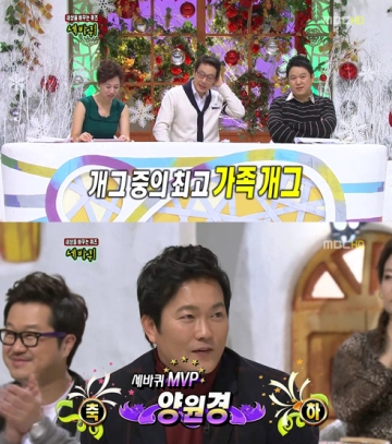Áö³ 7ÀÏ MBC '¼¼¹ÙÄû'¿¡ Ã⿬ÇÑ Äڹ̵ð¾ð ¾ç¿ø°æÀÌ Æ¯À¯ÀÇ ÀÔ´ãÀ¸·Î MVP¸¦ Â÷ÁöÇϸç, ¿ÃÇØ ´ëȰ¾àÀ» ¿¹°íÇß´Ù. '90³â´ë °³±×°èÀÇ ¹ÝÇ×¾Æ'·Î ù ¼Ò°³µÈ ¾ç¿ø°æÀº ÃÖ±Ù ¸¹Àº Çà»ç¸¦ ÁøÇàÇß´Ù°í ¹àÇô ´«±æÀ» ²ø¾ú´Ù. ¾ç¿ø°æÀº "¿äÁò Çà»ç¸¦ ¸¹ÀÌ Çß´Ù"¸ç "Àå·Ê½Ä¸¸¡¦