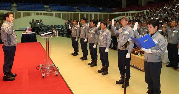 ´ë¿ìÁ¶¼±Çؾç(»çÀå °íÀçÈ£)Àº 5ÀÏ ¿ÀÀü 9½Ã ÀÌ È¸»ç ³²¹®Á¾ÇÕ°ü¿¡¼ °íÀçÈ£ »çÀåÀ» ºñ·Ô, °¢ Á¶Á÷ °æ¿µÁø°ú ÇöÀå °¨µ¶ÀÚ 400¿©¸íÀÌ Âü¼®ÇÑ °¡¿îµ¥ ¡®2015³â ½Ã¹«½Ä ¹× Áعý°æ¿µ ¼±Æ÷½Ä¡¯À» °¡Á³´Ù. ´ë¿ìÁ¶¼±ÇؾçÀº ¿ÃÇØ °æ¿µ ¹æÄ§À¸·Î ±â¼ú ¸®´õ½ÊÀ» ÅëÇÑ ½ÃÀå¼±µµ,¡¦