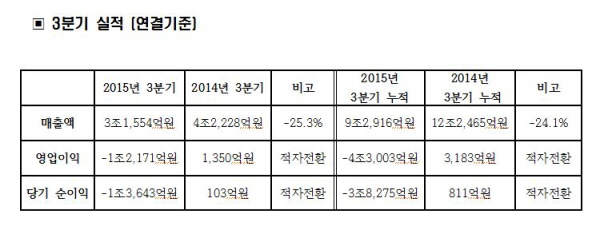 ´ë¿ìÁ¶¼±Çؾç(´ëÇ¥ÀÌ»ç Á¤¼º¸³)ÀÌ °ø½Ã¸¦ ÅëÇØ ¿ÃÇØ 3ºÐ±â ¿¬°á±âÁØ ÀáÁ¤ ½ÇÀûÀ» °ø°³Çß´Ù. 27ÀÏ ´ë¿ìÁ¶¼±ÇؾçÀº ¿ÃÇØ 3ºÐ±â±îÁö ´©ÀûÀ¸·Î 9Á¶ 2916¾ï¿øÀÇ ¸ÅÃâ¾×°ú 4Á¶ 3003¾ï¿øÀÇ ¿µ¾÷¼Õ½ÇÀÌ ¿¹»óµÈ´Ù°í °ø½ÃÇß´Ù. ´ç±â¼ø¼Õ½Ç ¿¹»ó¾×Àº 3Á¶ 8275¾ï¿øÀÌ´Ù.¡¦