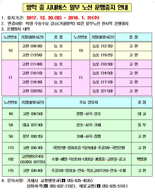 °ÅÁ¦½Ã°¡ ½Ã³»¹ö½º ³ë¼± º¯°æÀ» ¾È³»ÇÏ´Â ¾È³»¹®À» ½Ãû ȨÆäÀÌÁö¿¡ ¿Ã·ÈÁö¸¸ ÇØ´çºÎ¼ ÀüȹøÈ£°¡ ¾ûÅ͸®´Ù. 26ÀÏ °ÅÁ¦½ÃȨÆäÀÌÁö »õ¼Ò½Ä¶õ¿¡´Â '°Ü¿ï ¹æÇбⰣ ½Ã³»¹ö½º ÀϺΠ³ë¼± ¿îÇà ÁßÁö ¾È³»¹®' ÀÌ °Ô½ÃµÆ´Ù. ±×·¯³ª ÀÌ °Ô½Ã¹®¿¡´Â ½Ç¹«ºÎ¼¸¦ ¾È³»Çϴ¡¦