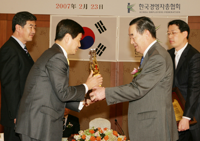 ´ë¿ìÁ¶¼±ÇؾçÀÌ ³ë»çÇù·Â°ú »ó»ýÀÇ ´ëÇ¥ ¸ð¹ü±â¾÷ÀÓÀ» ´Ù½Ã Çѹø ÀÔÁõÇß´Ù. ´ë¿ìÁ¶¼±Çؾç(´ëÇ¥ ³²»óÅÂ․www.dsme.co.kr)ÀÌ Áö³ 23ÀÏ Çѱ¹°æ¿µÀÚÃÑÇùȸ°¡ ÁÖ°üÇÏ´Â ¡®2007³â Çѱ¹³ë»çÇù·Â´ë»ó¡¯¿¡¼ ´ë±â¾÷ºÎ¹® ´ë»óÀ» ¼ö»óÇß´Ù. ÃÖ±Ù ¸î¸î ´ë±â¾÷ ³ë»ç°£ÀÇ¡¦