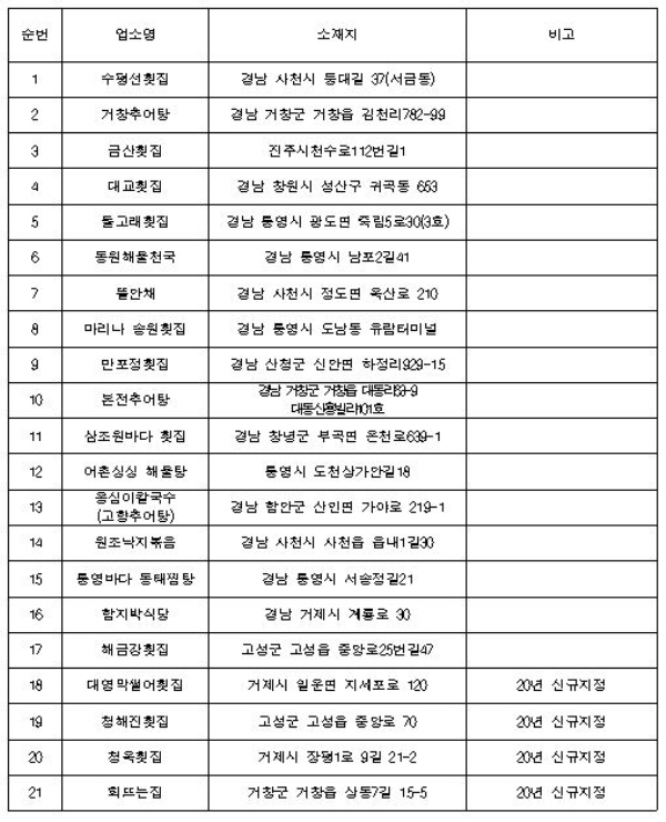 ±¹¸³¼ö»ê¹°Ç°Áú°ü¸®¿ø Å뿵Áö¿ø(Áö¿øÀå ±æÈ«¼®)Àº ¼ö»ê¹° ¿ø»êÁö Ç¥½Ã¸¦ ¸ð¹üÀûÀ¸·Î ¿î¿µÇϰí ÀÖ´Â °ü³» À½½ÄÁ¡À» ´ë»óÀ¸·Î 2020³âµµ ¿ø»êÁö Ç¥½Ã ¿ì¼ö À½½ÄÁ¡ 4°³ ¾÷¼Ò¸¦ ½Å±Ô·Î ÁöÁ¤Çß´Ù°í 12ÀÏ ¹àÇû´Ù. ±Ý¹ø ¿ì¼öÀ½½ÄÁ¡ È帷Π½ÅûÇÑ 8°³ ¾÷¼Ò´Â ¼ö»ê¹° °ü·Ã À½¡¦