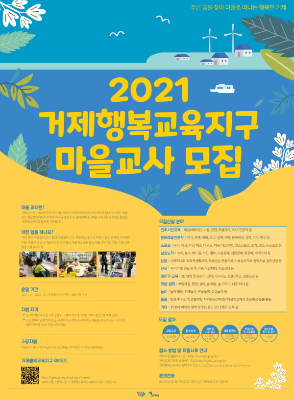 °ÅÁ¦±³À°Áö¿øÃ»(±³À°Àå À¯¿µ°©)Àº Áö³ 26ÀϺÎÅÍ °ÅÁ¦½Ã¹ÎÀ» ´ë»óÀ¸·Î 11°³ ºÐ¾ß¿¡¼ ¸¶À»±³»ç °ø¸ð¸¦ ½ÃÀÛÇß´Ù°í 31ÀÏ ¹àÇû´Ù. °ÅÁ¦ Çູ±³À°Áö±¸´Â °ø±³À°À» Çõ½ÅÇÏ°í ¸¶À»±³À°°øµ¿Ã¼¸¦ ¸¸µé±â À§ÇØ °æ»ó³²µµ±³À°Ã»°ú °ÅÁ¦½Ã°¡ ¾÷¹«Çù¾àÀ» ¸ÎÀº ±³À°°øµ¿Ã¼»ç¾÷ ¡¦