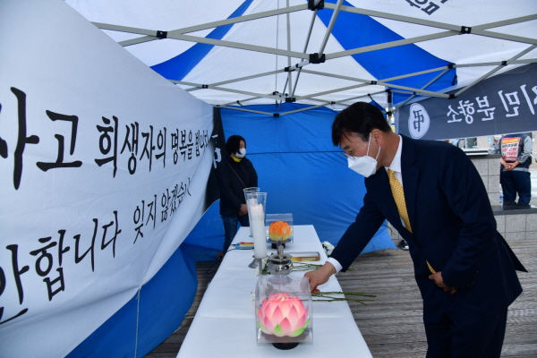 º¯±¤¿ë °ÅÁ¦½ÃÀåÀÌ ¼¼¿ùÈ£ Âü»ç 7Áֱ⸦ ¸Â¾Æ Èñ»ýÀÚµéÀ» Ã߸ðÇß´Ù. 16ÀÏ °ÅÁ¦ ¿ÁÆ÷ ¼öº¯°ø¿ø¿¡¼´Â ¡®¼¼¿ùÈ£ Âü»ç 7ÁÖ±â Ã߸𠹮ÈÁ¦¡¯°¡ ¿·È´Ù. ¼¼¿ùÈ£¸¦ ±â¾ïÇÏ´Â °ÅÁ¦»ç¶÷µéÀÌ ÁÖ°üÇÑ À̹ø Ã߸𠹮ÈÁ¦´Â ºÐÇâ¼Ò ¿î¿µ°ú ³ë¶õ¸®º» ³ª´® Çà»ç, Ã߸ðÀÇ ¸ñ¼Ò¸®¡¦
